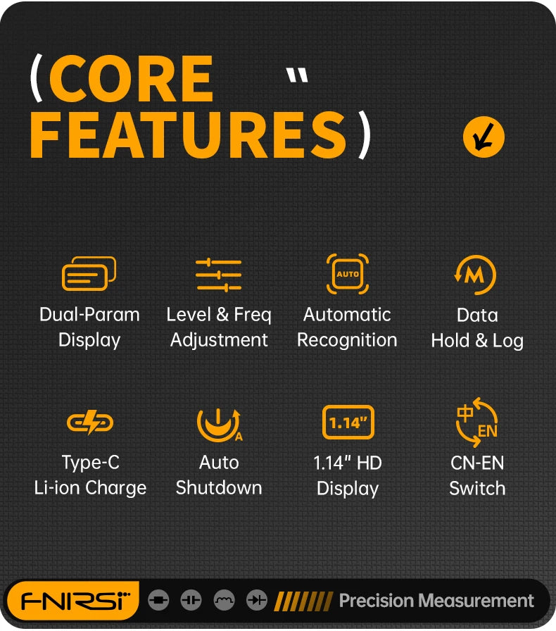 - Frekuensi Uji Ganda: Menawarkan tiga frekuensi uji – 100Hz, 1kHz, dan 10kHz – dengan level uji 0,3V dan 0,6V RMS.