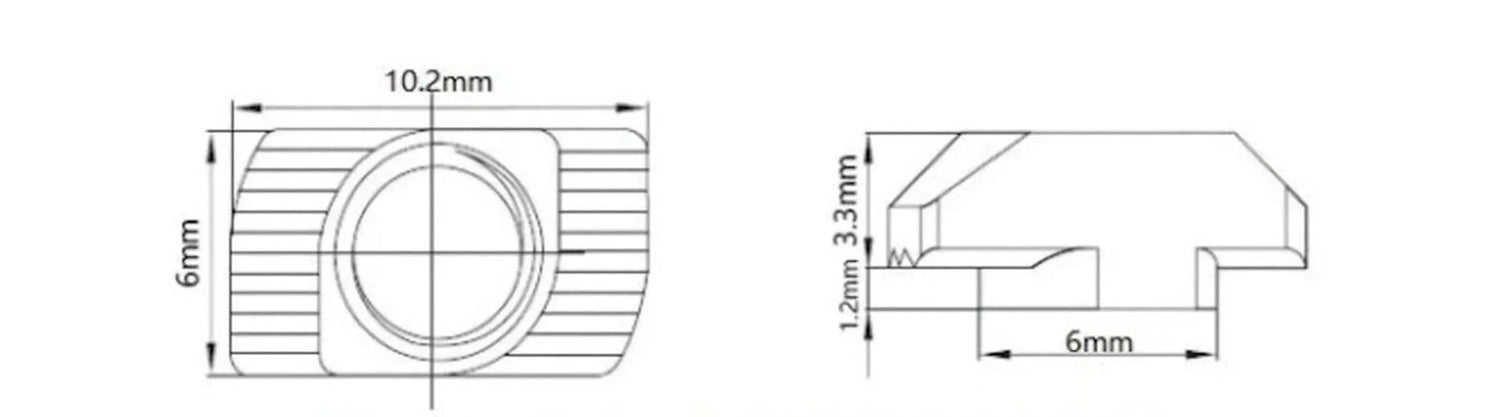 Keterangan: Kacang Tee Drop-In T-Nut ini dirancang untuk pemasangan mudah pada profil ekstrusi Aluminium Eropa slot-T seri 20mm.
